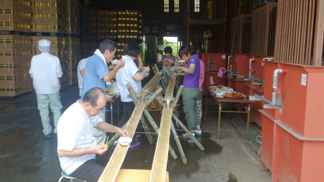 夏真っ盛りの8月13日、食欲も落ち夏バテぎみの社員のために、そうめん流しを行いました。